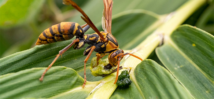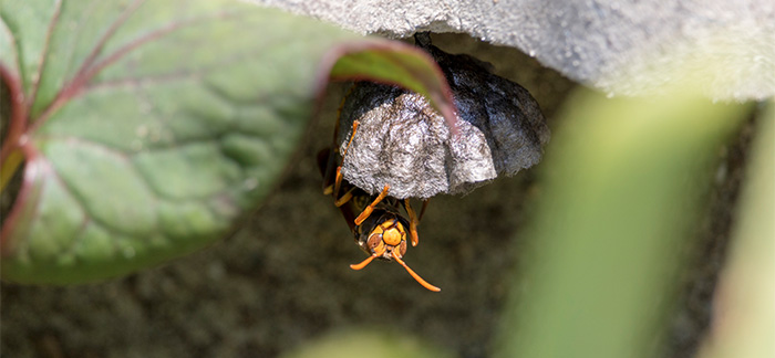 蜂はイモムシや毛虫など、昆虫を幼虫の餌にしています。そのため、木や草花が多い庭などには、蜂の巣が作られやすい傾向にあり、害虫を狩ってくれることから、蜂は益虫とも呼ばれています。