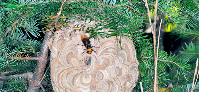 また、モンスズメバチは、一見しただけではわかりづらい場所に巣を作るのも特徴です。主に地中や木の中、家屋であれば屋根裏といった、閉鎖空間に巣を作る傾向にあります。