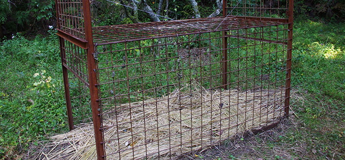 畑を荒らす害獣の対策には、小型の箱罠や防獣フェンスが効果的です。