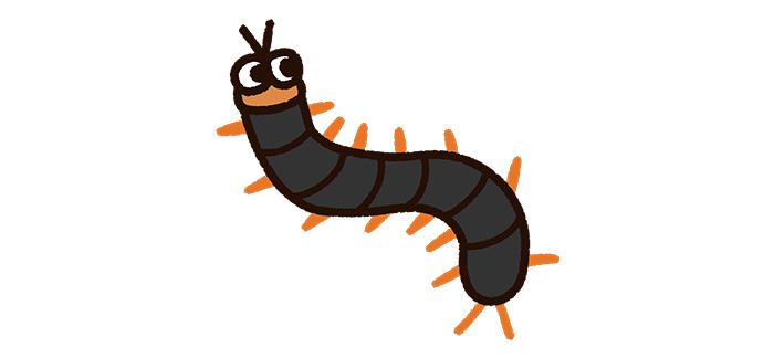 ムカデは体長7〜13cmほどで細長く、体節ひとつにつき一対の足を持つ生物です。餌が多い場所、薄暗く温湿度が高い場所を好むため、理想的な温湿度である5〜6月にかけて多く発生します。一方、寒さに弱く、10℃を切るところでは活動できません。