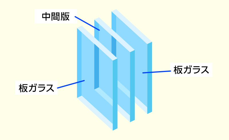 ただ2枚のガラスを合わせているのではなく、中間膜があることによりガラスを強固にしてくれています。