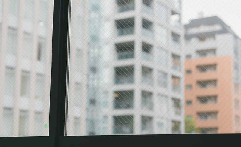 網入りガラスは、内部に網状のワイヤーが入っているガラスのことです。 やや厚めで破損しても、破片があまり飛び散りません。 ただし、ワイヤーは金属であるため、高温になると熱割れのリスクがあります。