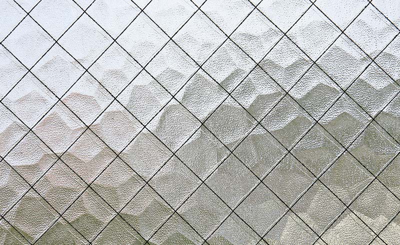 網入りガラスは、型板ガラスの中に金属のワイヤーが入っていることで、火災時に割れた際に飛散を抑えられるガラスです。耐火ガラスと同じく、建築基準法により対象地域に導入することが定められており、延焼防止に効果があるとされています。
