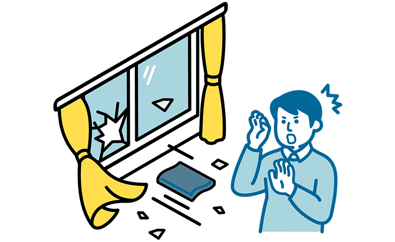ただしそれらの対策は、ガラスの割れを防げるわけではなく、あくまで飛散防止にとどまることに注意が必要です。