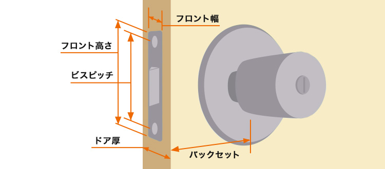 新しいタイプを選ぶ際は、ドアの厚さやフロント寸法、ビスピッチ、バックセットのサイズをしっかり測定することが大切です。