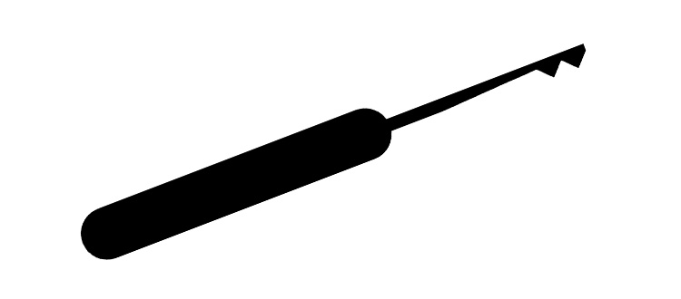 折れた鍵が鍵穴から出ていない(見えない)状態のときは、細めのピンセットやピックツール(持ち手のついた針、千枚通しのようなもの)を、使用してください。これらを2本使い、鍵に引っかけてゆっくりと引き出します。 鍵穴を傷つけないように、注意してください。でも、無理をせず、このままの状態で鍵業者に依頼する方が無難です。