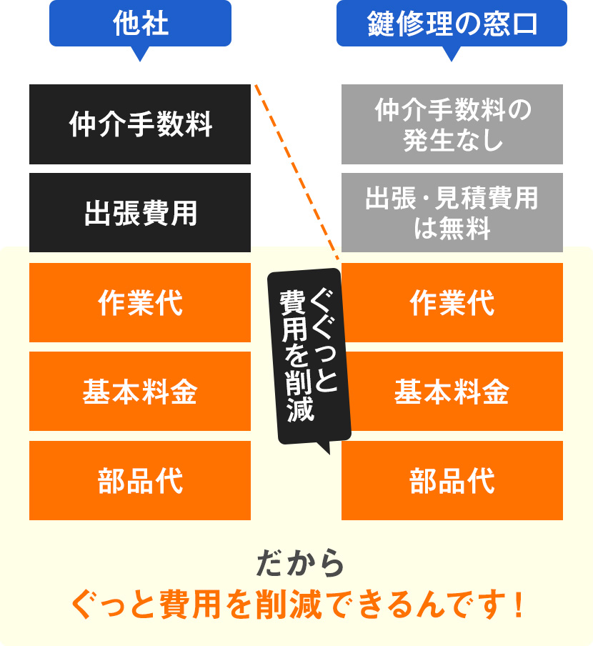 鍵修理の窓口は仲介業者を一切挟まず、
